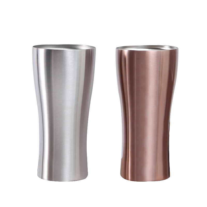 Chun monotony na gcupán cruach dhosmálta a bhriseadh, cuirimid ceithre rogha dath trendy i láthair: Tíotáiniam Silver, Champagne Gold, Rose Brown, agus Deep Sea Blue. Cuimsíonn an tsamhail Tíotáiniam Airgid sofaisticiúlacht íosta, áit a dtagann toin fhionnuar mhiotalacha i ngleic le beoir ómra le haghaidh vibe upscale. Cuireann Champagne Gold blas ar shó éadrom, atá foirfe chun leann órga a dhoirteadh a fhágann go lasfaidh an ghrian sa ghloine. Cruthaíonn Rose Brown atmaisféar retro, ag líonadh láithreach an bhailiú le vibe a leagtar-back nuair a sheirbheáil le beoir torthaí. Seasann Deep Sea Blue mar rogha phearsantachta dána, agus is dóigh leis an gcupán a bheith ag glacadh le rúndiamhair agus fionnuaracht na farraige domhain. Cloíonn dearadh cuartha uathúil an choirp le cuair phailme, ag tairiscint mothú silky-réidh agus cobhsaí nuair a ardaítear an ghloine.
