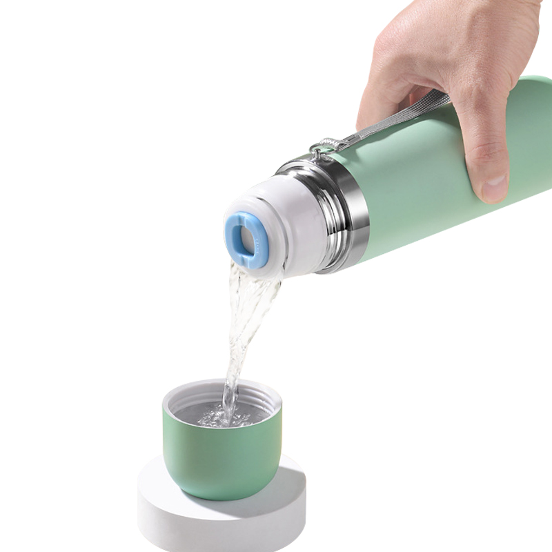 Tabhair faoi deara a dhearadh cliste: Tá an clúdach dúbailte mar chupán. Nuair a bhíonn deoch de dhíth ort, gan ach an clúdach a dhíscaoileadh, agus athraíonn sé go soitheach áisiúil, rud a fhágann go bhfuil tú áisiúil cibé an bhfuil tú ag obair, ag taisteal, nó ag dul.
