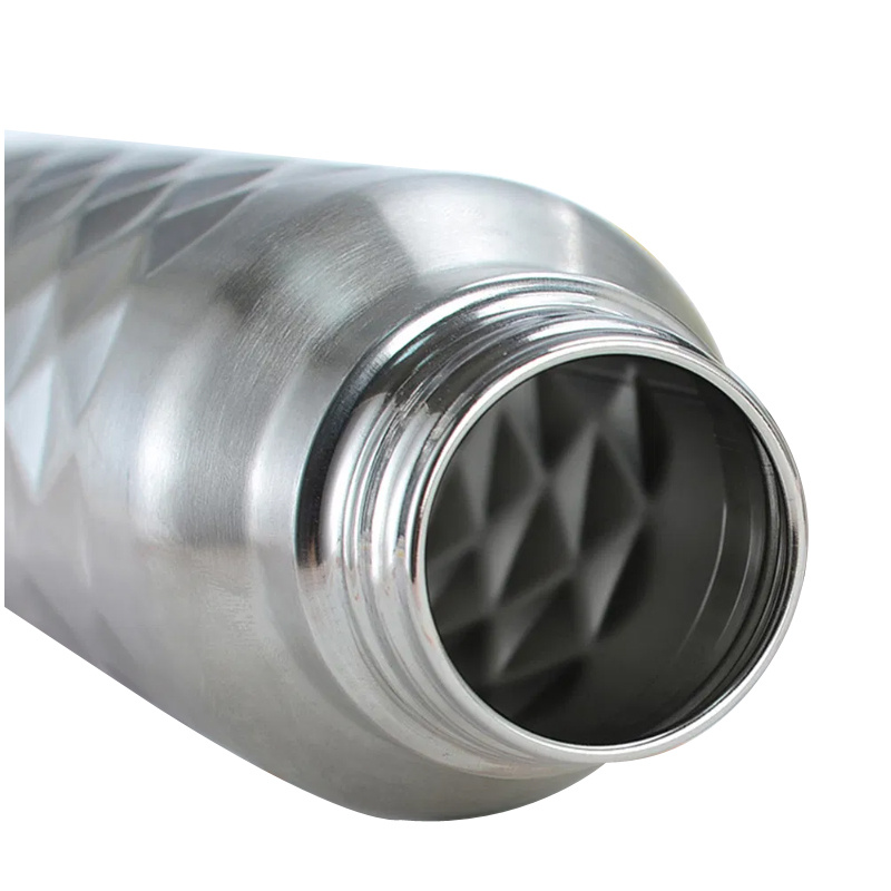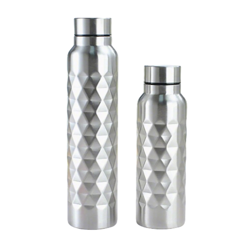 Déanta as cruach dhosmálta ard-ghrád (saor ó BPA, meirge-resistant, agus cruthúnas fiacla), déantar an buidéal seo chun go mairfidh sé trí bliana d'úsáid laethúil. dhéantar a Ní le taispeáint amháin a chorp 3D Diamond-uigneach a sheasann amach: cuireann an patrún geoiméadrach bailchríoch ardghradaim leis an tsúil agus cuireann sé greim slán neamh-duillín ar fáil – ní bhíonn aon smál ar dhromchlaí sleamhain i lár an chomaitéireachta nó iar-chleachtaidh.