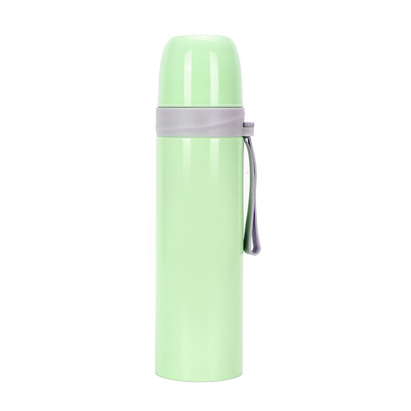 350ml Méid Mion: Riachtanais don scoil: Níl ach 20.8cm ar airde, 6.8cm ar leithead, is féidir é a shleamhnú go héasca isteach sa phóca taobh de mhála droma bunscoile. Chomh héadrom sin go mothaíonn sé cosúil le pictiúrleabhar a iompar, agus is féidir leis an leanbh é a iompar gan stró; ar fáil i gceithre dathanna: macaróin corcra, bándearg, gorm, agus glas, cosúil le dathanna candy a chur isteach sa backpack.