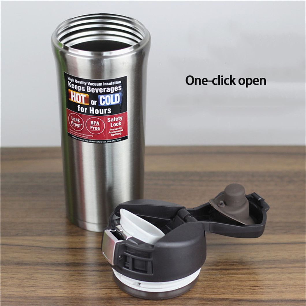 Brúigh an cnaipe airgid ar chlúdach an chupáin, agus cliceáil ar oscailt le Léim shásúil. Luíonn an gob folaithe go gasta i gcoinne do bheola, rud a ligeann do uisce sreabhadh go réidh ar feadh an chiumhais chuartha gan aon bhaol go dtarlóidh sé. Tá an séala silicone ar thaobh istigh an chlúdaigh aerdhíonach, mar sin fiú má chroitheann tú an cupán bun os cionn, ní sceitheadh aon titim amháin. Déan é a phacáil i do mhála taobh le haghaidh do chomaitéireachta, agus ní bheidh ort a bheith buartha faoi do dhoiciméid nó do ríomhaire a fhliuchadh. Is é an fíor-athróir cluiche ná an ghné 'glas sábháilteachta': socraigh an sleamhnán go 'OFF' chun gníomhachtú de thaisme a chosc, ligfidh sé duit scíth a ligean cibé an bhfuil tú i do mhála nó i do charr.
