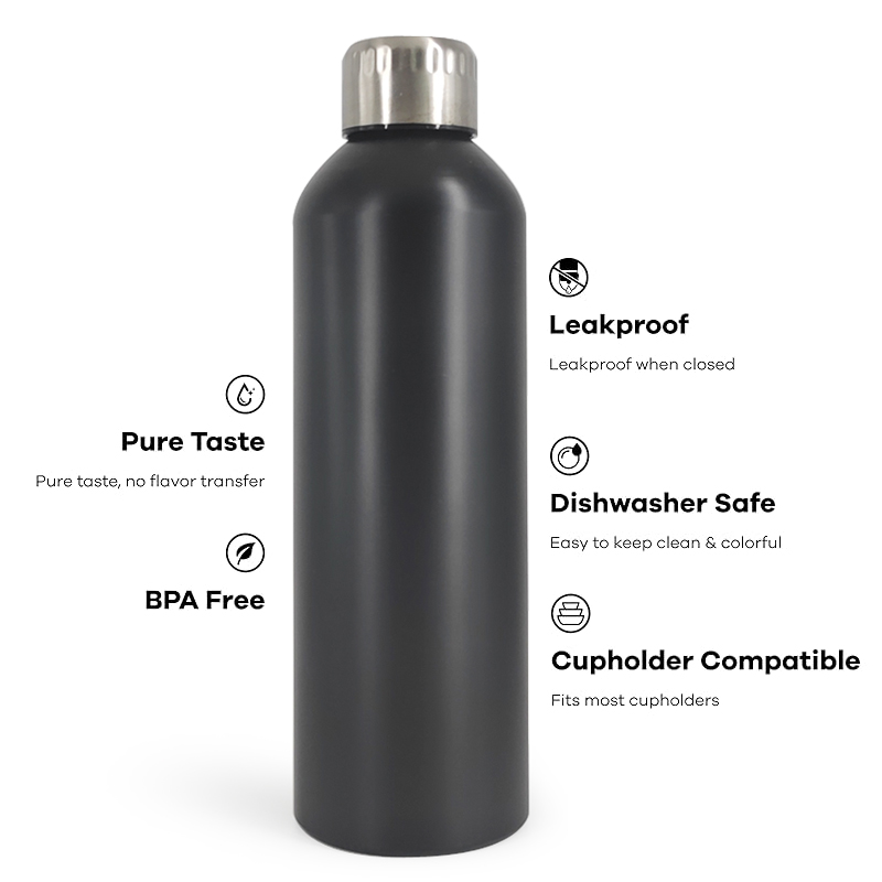 Tá sé déanta as alúmanam ardcháilíochta de ghrád bia (in-athchúrsáilte gan teorainn, saor ó BPA, agus saor ó luaidhe), tá sé deartha chun tosaíocht a thabhairt do do shláinte agus don phláinéid araon: ní chiallaíonn aon aistriú blas go bhfuil blas uisce íon agat, fanann do chaife iced neamhthruaillithe, agus coinníonn do smoothie iar-workout a blas úr trom (gan aon bholadh lingering, fiú tar éis é a úsáid arís agus arís eile). Séala an clúdach miotail scriú-barr sceite daingean, ionas gur féidir leat é a chaitheamh i do mhála, i do shealbhóir cupáin cairr (feileann sé don chuid is mó de na méideanna caighdeánacha), nó i tote giomnáisiam gan doirteadh - cé go ndéanann a thógáil sábháilte miasniteoir glanadh gan stró (ní gá scrobadh láimhe tedious).