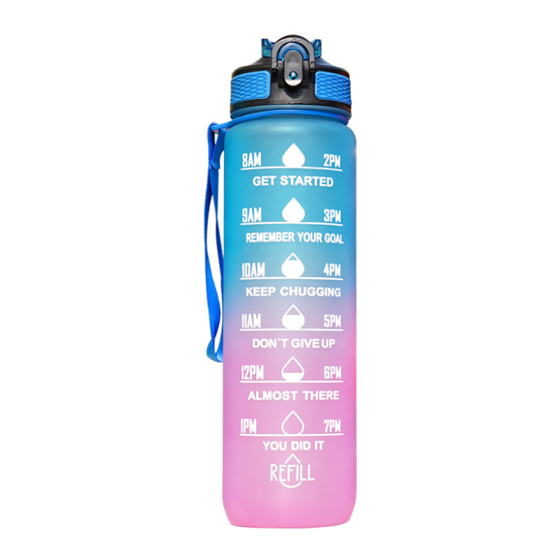 Comhcheanglaíonn an buidéal uisce spóirt 1000ml seo gnéithe cupán spáis plaisteach agus crúisc taistil lasmuigh le dearadh dath grádáin. Mar gheall ar a chuma ghrádáin stylish, tá sé iontach foirfe chun é a iompar le linn gníomhaíochtaí lasmuigh, ag freastal ar riachtanais hiodráitithe laethúla agus ar éilimh an chleachtaidh choirp.
