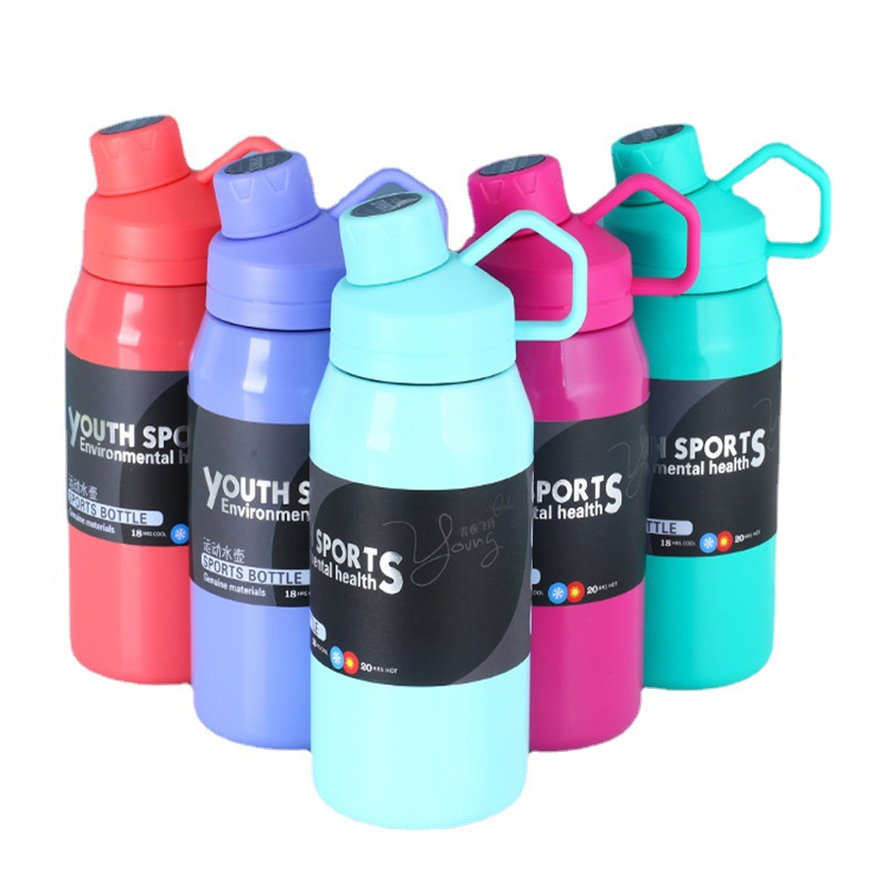 Tagann siad i dhá dhath bheoga, atá deartha le haghaidh stíl mhaireachtála ghníomhach, agus tá láimhseáil áisiúil ag na buidéil seo le haghaidh iompair éasca. Cibé an bhfuil tú ag bualadh an giomnáisiam, ag dul ar aghaidh, nó ag imirt badmantan, cinntíonn na buidéil seo go bhfanfaidh tú athnuachan. Tá struchtúr inslithe sé shraith sa bhuidéal uisce spóirt seo a ghlasann ciseal teochta de réir ciseal chun an éifeacht a fheabhsú agus coinneáil teasa a bhaint amach.