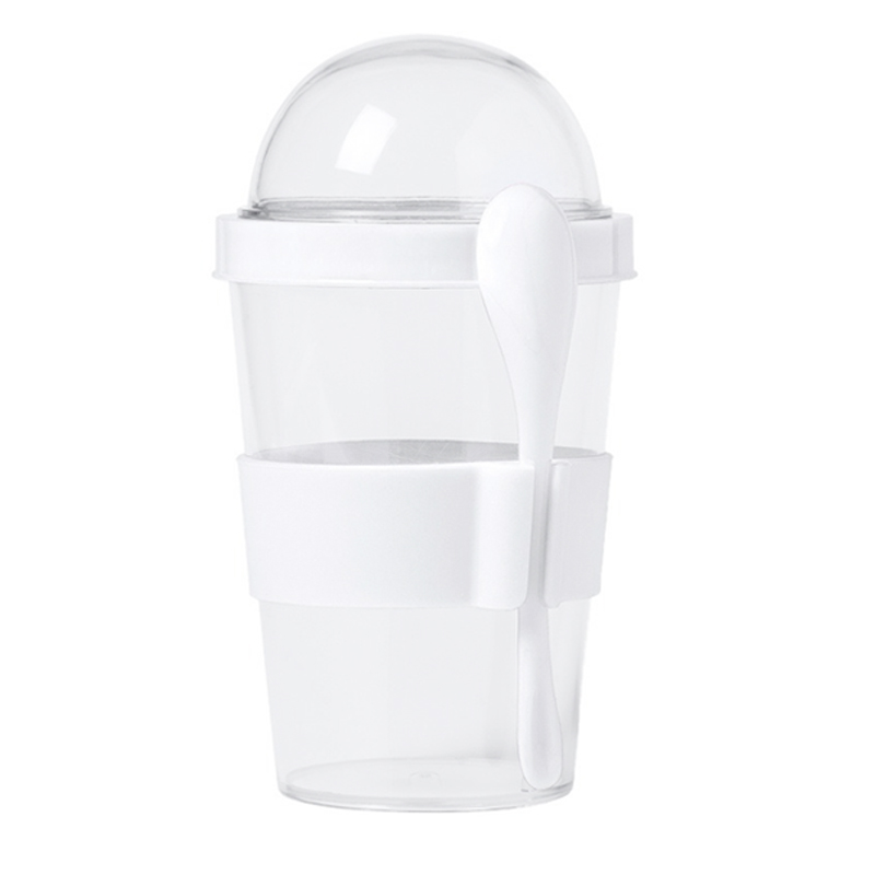 Déantar an clúdach cruinneachán-chruthach a dhúbailt mar urrann ar leith le haghaidh granola, gránach, nó barráin (gan aon mhin choirce bog!). Líon an príomhchupán le bainne, iógart, nó smoothie, agus coinnigh comhábhair thirim úr go dtí go bhfuil tú réidh le meascadh - foirfe le haghaidh comaitéireachta, maidineacha oifige nó taistil.