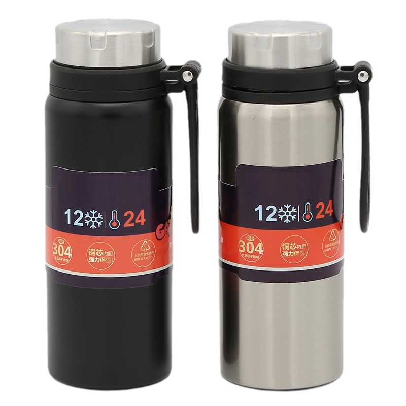 Is cupán Thermos é seo. Tá líneáil istigh 304 cruach dhosmálta ann le croí copair, a chuireann ar a chumas deochanna a choinneáil te ar feadh suas le 24 uair an chloig agus fuar ar feadh 12 uair an chloig. Tagann an cupán le láimhseáil áisiúil le haghaidh iompair éasca, agus tá dhá rogha datha stylish ann: dubh agus airgead. Tá sé praiticiúil le húsáid go laethúil, an gcaithfidh tú do chaife a choinneáil te le linn na hoibre nó uisce fuar a bheith agat nuair a bhíonn tú amuigh.