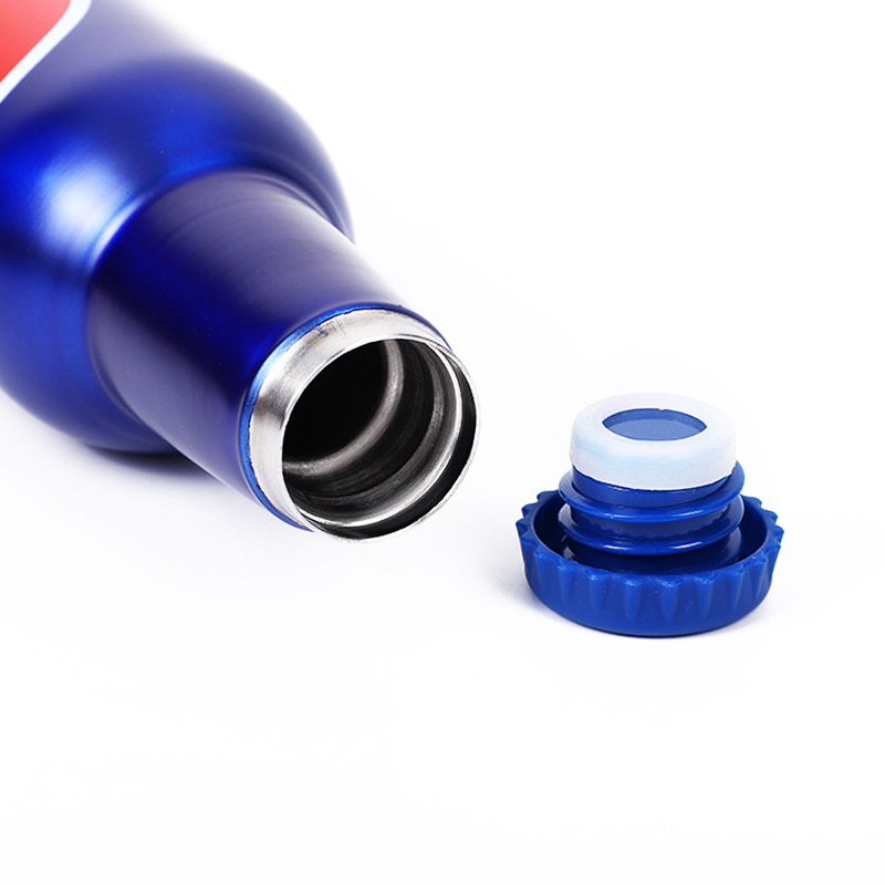 Is buidéal uisce cruach dhosmálta te é seo atá múnlaithe cosúil le buidéal cola. Fágann ábhar cruach dhosmálta go bhfuil sé buan agus maith ag coinneáil deochanna te nó fuar, rud atá áisiúil do dhaoine taitneamh a bhaint as deochanna ag an teocht cheart agus iad ag dul amach, ag feidhmiú, nó ag obair. Tá an chuma ar an gcuma Cola -cosúil le stylish agus tarraingteach, ag cur le spraoi le hól laethúil.