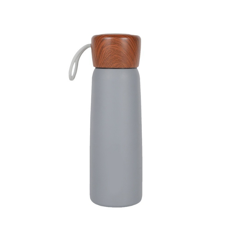Nuair a bhuaileann buidéal íostach clúdach adhmaid-gráin, athraíonn an buidéal uisce inslithe cruach dhosmálta seo le hanla isteach i do chompánach óil cáilíochta don saol laethúil.