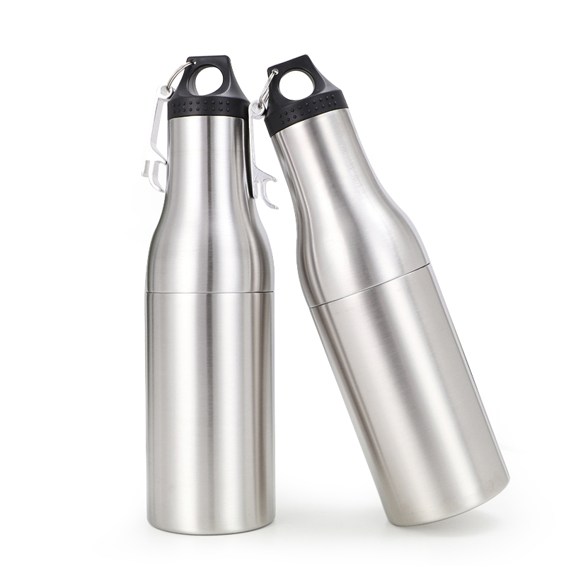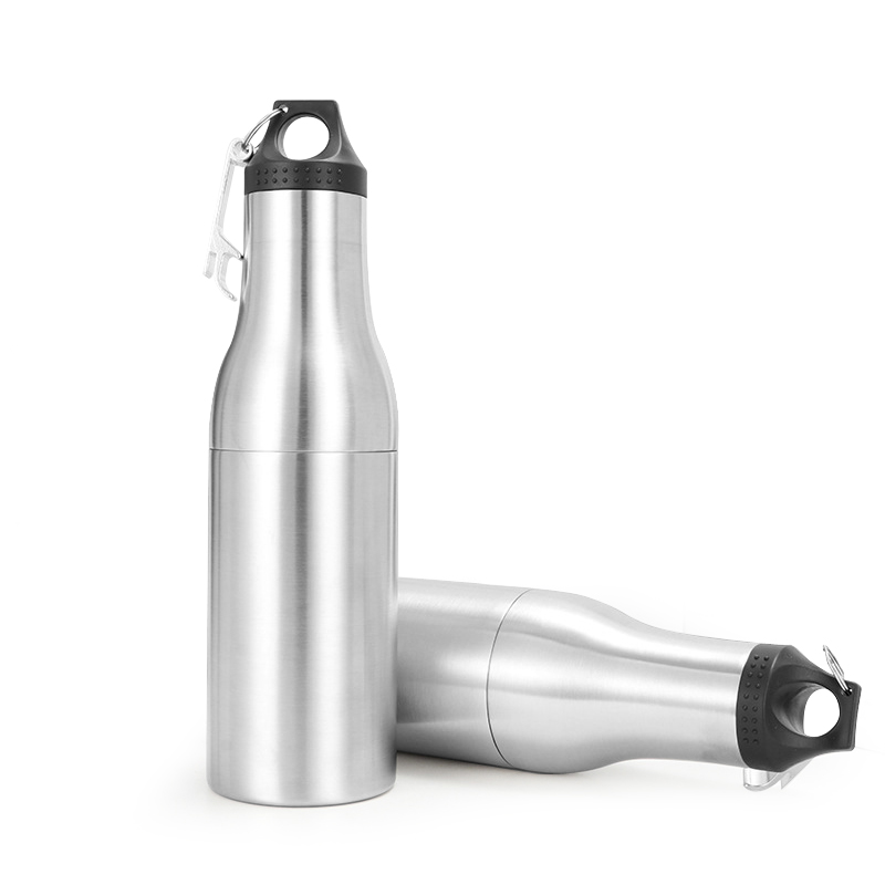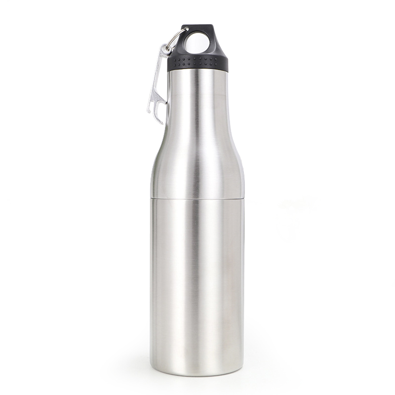 Tá 304 táirge cruach dhosmálta réidh don samhradh seo deartha mar bhuidéal beorach fuaraithe nó mar choimeádán dí. Le hacmhainn 12-ounce, tá dearadh cupáin dhúbailte folús-séalaithe ann a chothromaíonn éifeachtúlacht fuaraithe le hiniomparthacht. Tagann an barr sleek le clúdach dubh agus le hoscailteoir buidéal tógtha isteach chun rochtain éasca a fháil air. Mar gheall ar a dhearadh íostach le bailchríoch mhiotalach láidir tá sé foirfe do chruinnithe samhraidh agus do ghníomhaíochtaí lasmuigh, ag coinneáil deochanna fionnuar ar feadh tréimhsí fada.