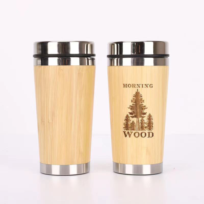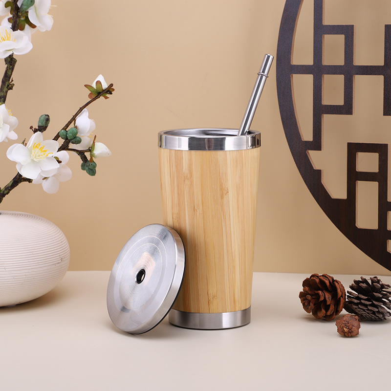 Cupán inslithe cruach dhosmálta dúbailte-ciseal cruthaitheach déanta as bambú, ag cuimsiú áilleacht scagtha an ghnó agus an tsaoil laethúil.