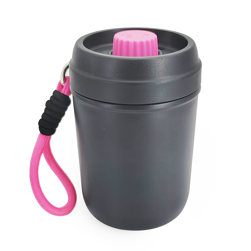 Tá cuma íostach ach praiticiúil ar an dearadh, ag comhcheangal bonn dorcha liath le láimhseáil bándearg agus clúdach knob le haghaidh achomharc aeistéitiúil agus iniomparthacht. Tá sé crafáilte ó 304 cruach dhosmálta, cuireann sé marthanacht slán ar fáil le hairíonna inslithe teirmeacha den scoth. Cuireann an clúdach séalaithe cosc ar dhoirteadh go héifeachtach, rud a chiallaíonn go bhfuil sé oiriúnach chun caife a iompar le linn comaitéireachta laethúla nó deochanna agus sneaiceanna a stóráil lasmuigh - ag seachadadh feidhmiúlacht agus áise araon.