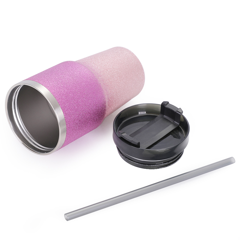 Tá teanga dearaidh a spreag an samhradh sa chupán, a thaispeánann sciath grádán glitter tarraingteach, hues úra macaróin, agus priontaí samhraidh íosta. Nuair a chuirtear solas orthu, cruthaíonn na heilimintí seo éifeacht shimmer dinimiciúil a thagann le roghanna aeistéitiúla na ndaoine óga le haghaidh gabhálais faiseanta ach a chumascann gan stró isteach i laethanta trá, turais champála, nó comaitéirí laethúla. Éiríonn an cupán féin ina phíosa ráitis nuair a choinnítear é ar láimh, ag tarraingt aird láithreach ar cibé áit a dtéann sé.