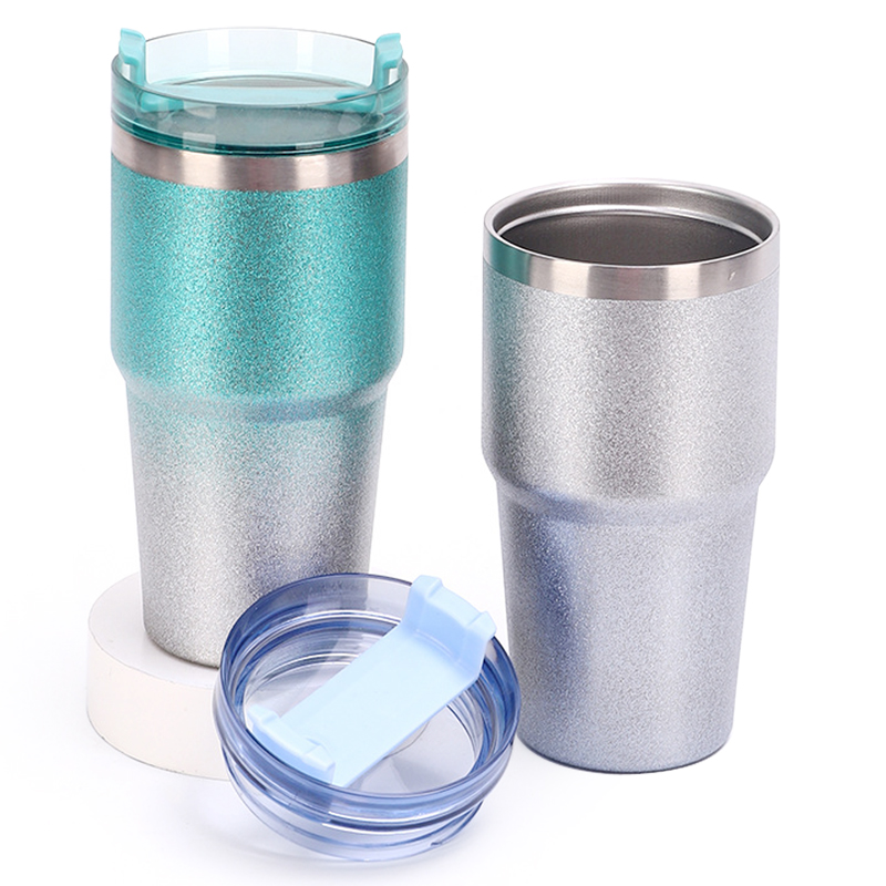 Tagann an cupán teirmeach stylish seo le dearadh púdair grádáin i méideanna 30 oz agus 20 oz. Ag cur le praiticiúlacht le haghaidh turais bhóthair le cuma chic, tá sé crafáilte ó ábhair shábháilte atá foirfe do chomaitéirí laethúla, eachtraí lasmuigh, nó úsáid in-charr. Cuireann an patrún grádáin sleek teagmháil le bua nua -aimseartha le do chuid buneilimintí laethúla.