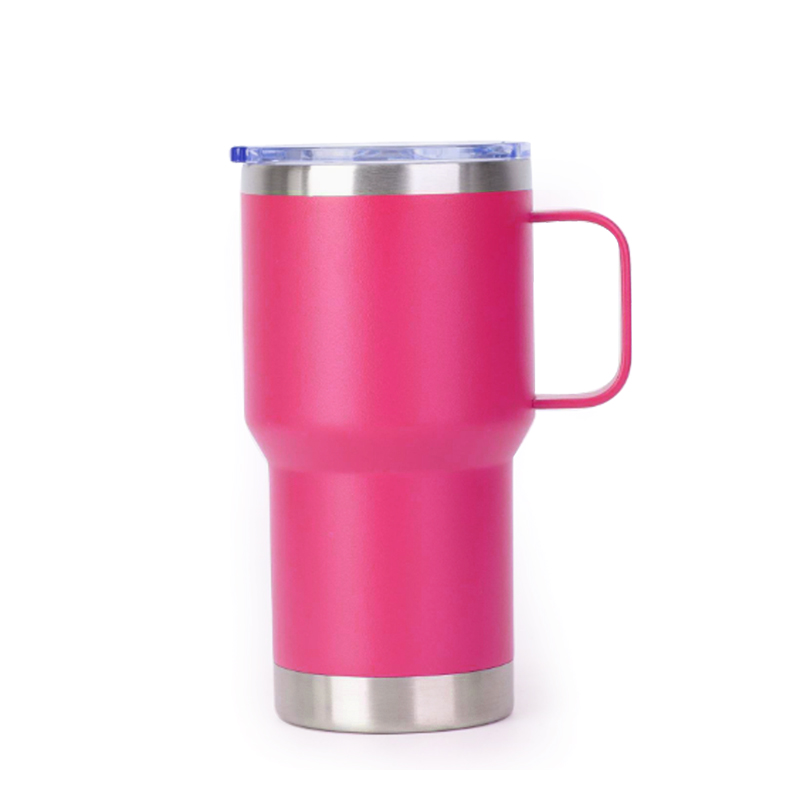 Is éard atá sna cupáin seo ná dearadh láimhseála le haghaidh áise feabhsaithe. Cibé acu a úsáidtear le haghaidh hiodráitithe laethúla nó i suíomhanna oifige agus baile, soláthraíonn an láimhseáil greim chompordach a chuireann cosc ar shleamhnú mar gheall ar an dromchla réidh, ag feabhsú inúsáidteachta agus sábháilteachta. Cuireann an dearadh praiticiúil seo teagmháil le feidhmiúlacht stylish leis an cupán freisin.