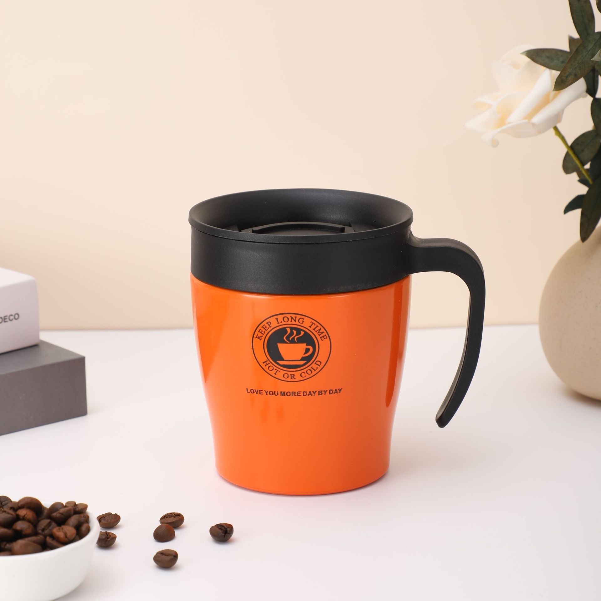 Tá an cupán 300ml déanta as cruach dhosmálta 18/8. Is féidir le teicneolaíocht inslithe fholús dúbailte ardchiseal deochanna a choinneáil te ar feadh suas le 6-12 uair an chloig.