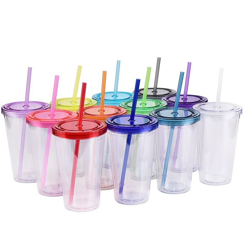 Sraitheanna Dúbailte Ath-inúsáidte Tumbler Fuar Cupán Plaisteach Soiléir Trédhearcach
