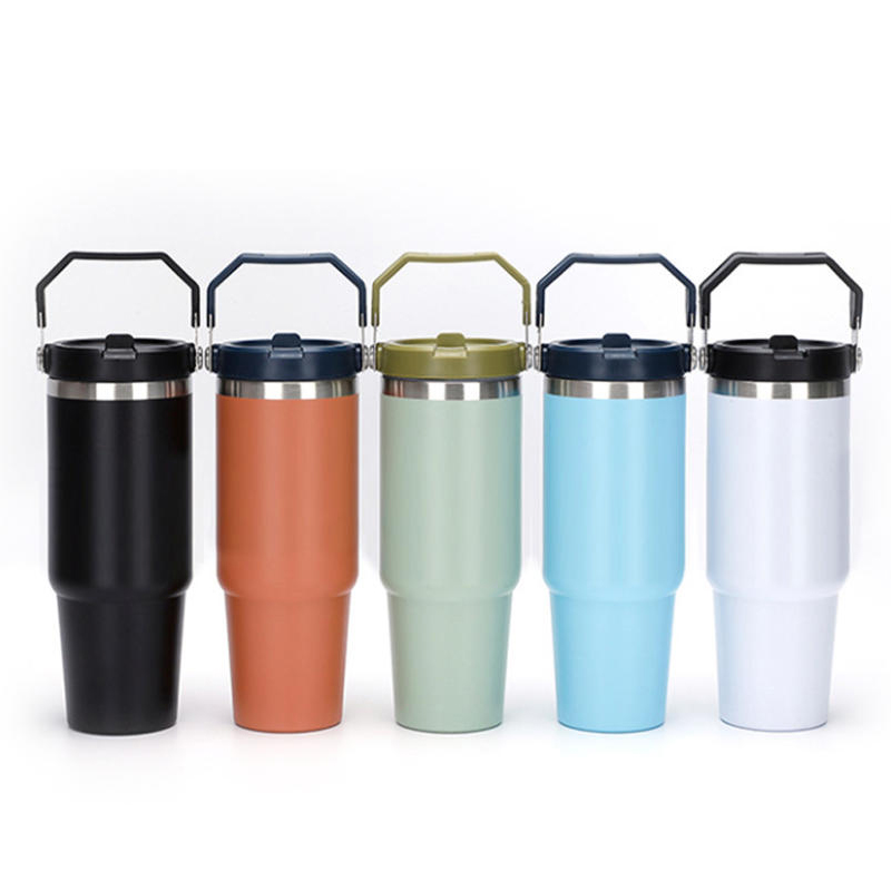 Tugann an dromchla dath-phéinteáil an tumbler bailchríoch réidh, aonfhoirmeach a thacaíonn le cur i bhfeidhm lógó agus saincheaptha branda. Le lorg dlúth - go háirithe an méid 30oz ag 8.5 × 24 cm - luíonn an tumbler go héasca isteach sa mhála droma, málaí oibre, agus socruithe iompair laethúla.